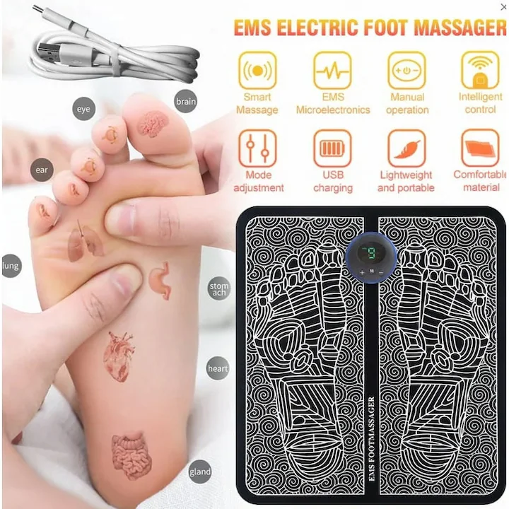 Designul sau compact si portabil il face usor de utilizat in orice moment si in orice loc, iar posibilitatea de incarcare prin USB il face convenabil pentru utilizare atat acasa, cat si in calatorii. Indiferent daca ai nevoie de o relaxare dupa o zi lunga de munca sau vrei sa iti ingrijesti picioarele dupa activitati intense, acest aparat de masaj pentru picioare EMS este alegerea ideala pentru revitalizarea si reimprospatarea picioarelor tale.